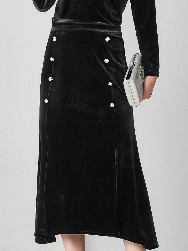 * 表示必填采购:922030 欧洲站原创新款金丝绒半身裙 时尚侧拉链双排扣高腰包臀裙