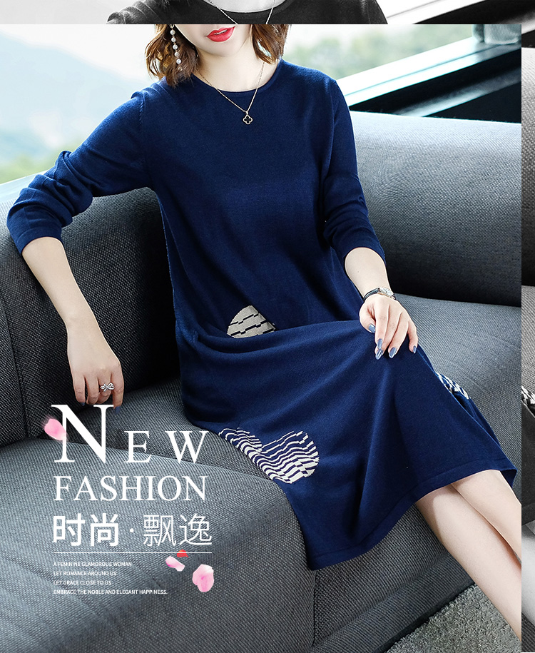 首页 » 玉云裳产品中心 > 连衣裙系列 > 针织连衣裙 > 长袖圆领针织连衣裙2018秋季新款宽松大码女装打底衫中长款毛衣裙 N909