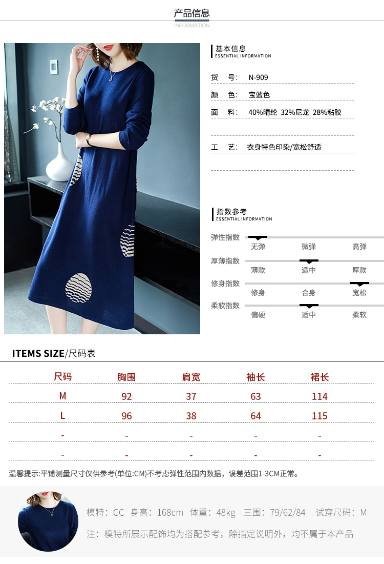 * 表示必填采购:长袖圆领针织连衣裙2018秋季新款宽松大码女装打底衫中长款毛衣裙 N909